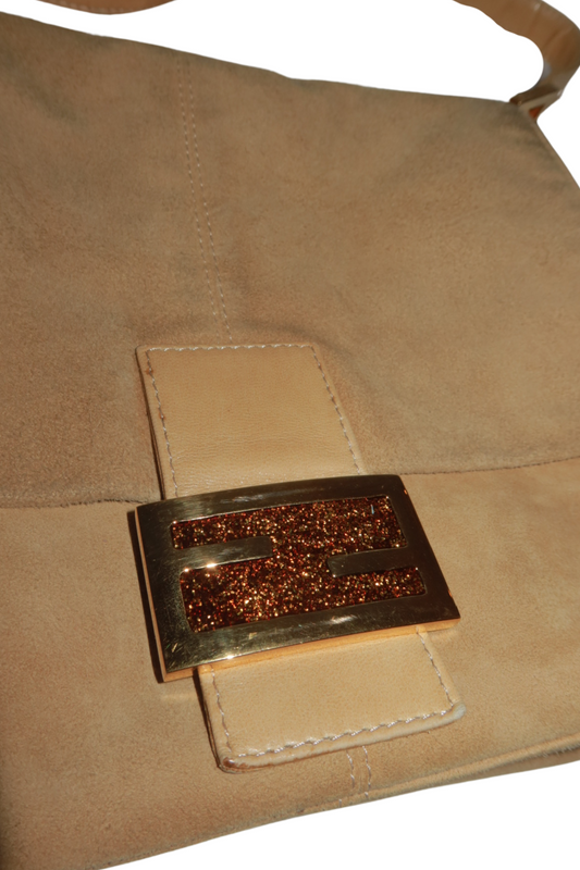 FENDI Mamma Baguette Beige Suede Leather Shoulder Bag