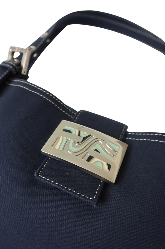 FENDI Navy Blue Fabric Handbag with Enamel Buckle