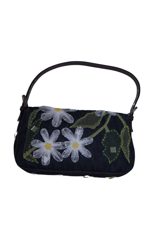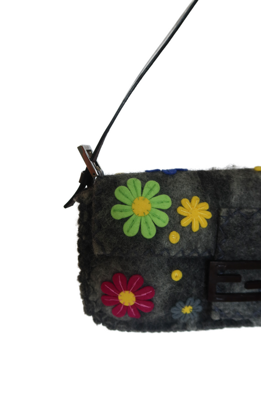 RARE FENDI Wool Baguette Multicolour Floral Embroidery