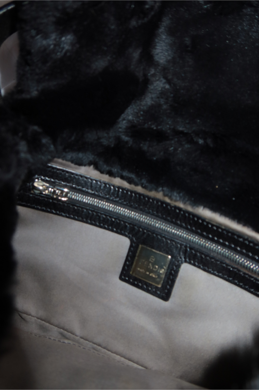FENDI S/S 2000 by Karl Lagerfeld Black Canvas Green Python Beaded Mamma Baguette