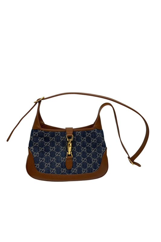 GUCCI Jackie 1961 Blue Brown Denim Shoulder Bag