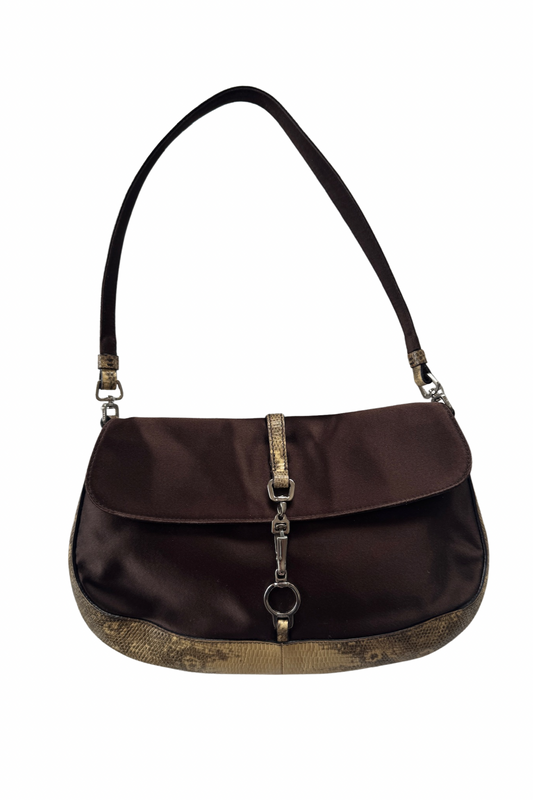 RARE PRADA Satin Leather Brown Shoulder Bag