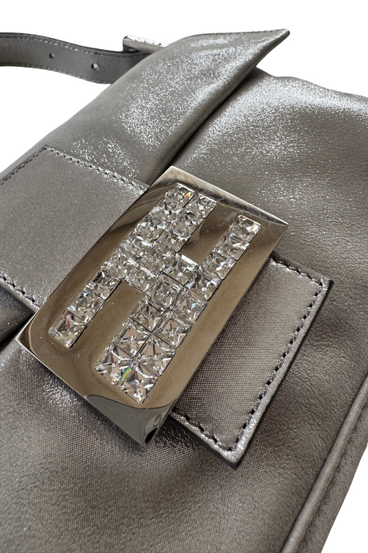 RARE FENDI Silver Crystal Baguette Shoulder Bag